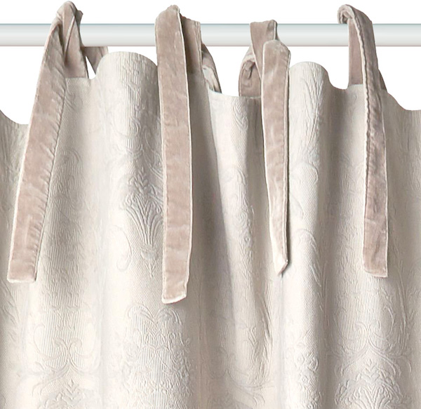 Im Gegensatz zu den Schlaufen sind hier zwei lose, jeweils 30-40cm lange Bänder am Vorhangstoff angenäht, die nach eigenem Belieben verknotet werden können:
