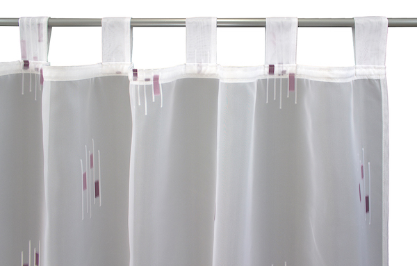 Für diese optisch sehr ansprechende Art der Befestigung werden am Vorhangstoff ca.7-10 cm lange Schlaufen angenäht, die einfach über eine Gardinenstange oder Spannschnüre gezogen werden können: